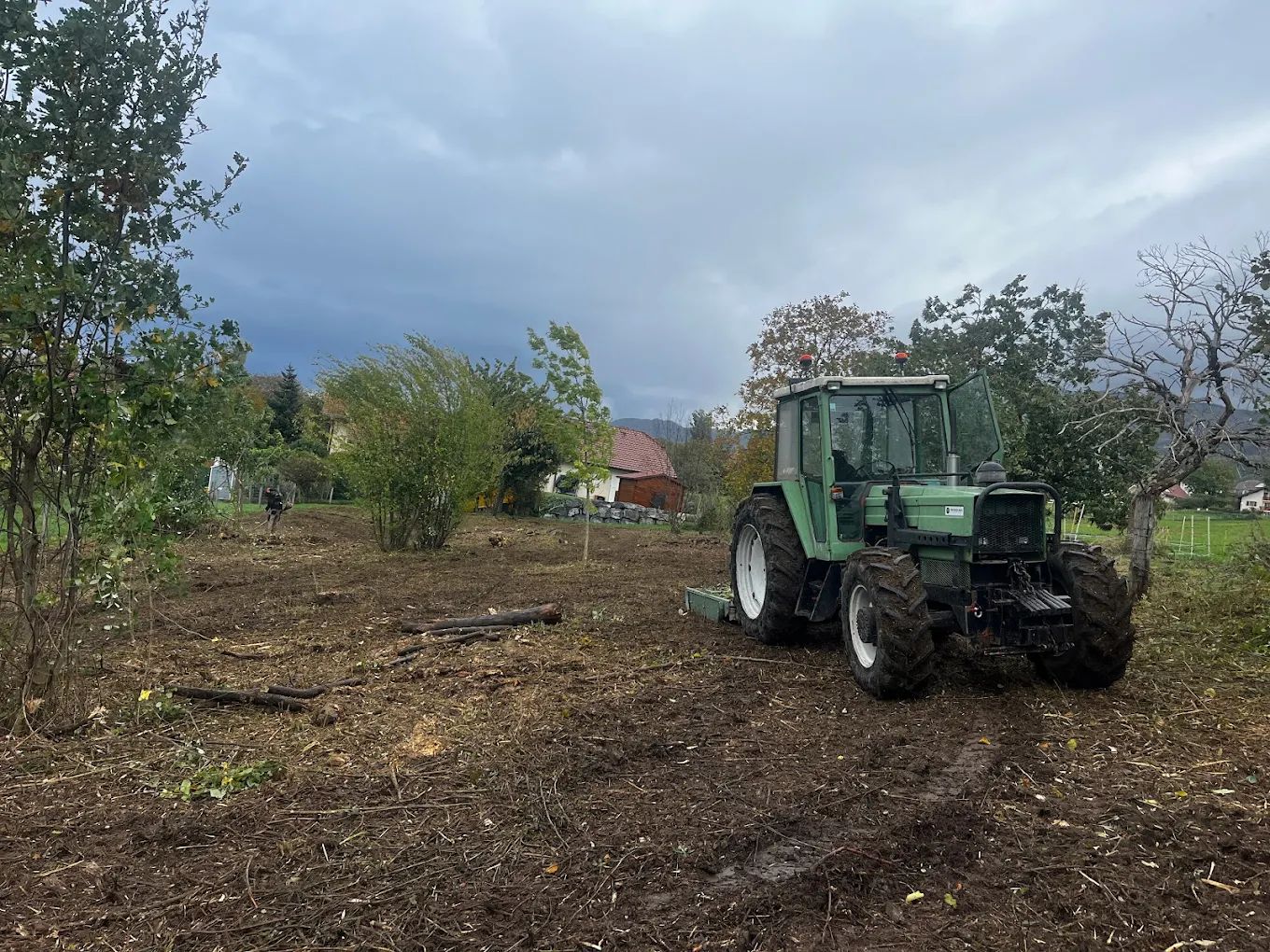 Selon votre choix, le broyat est laissé sur place (paillage naturel qui freine la repousse) ou évacué totalement. Nous réalisons les finitions au rotofil autour des arbres conservés et des clôtures.
